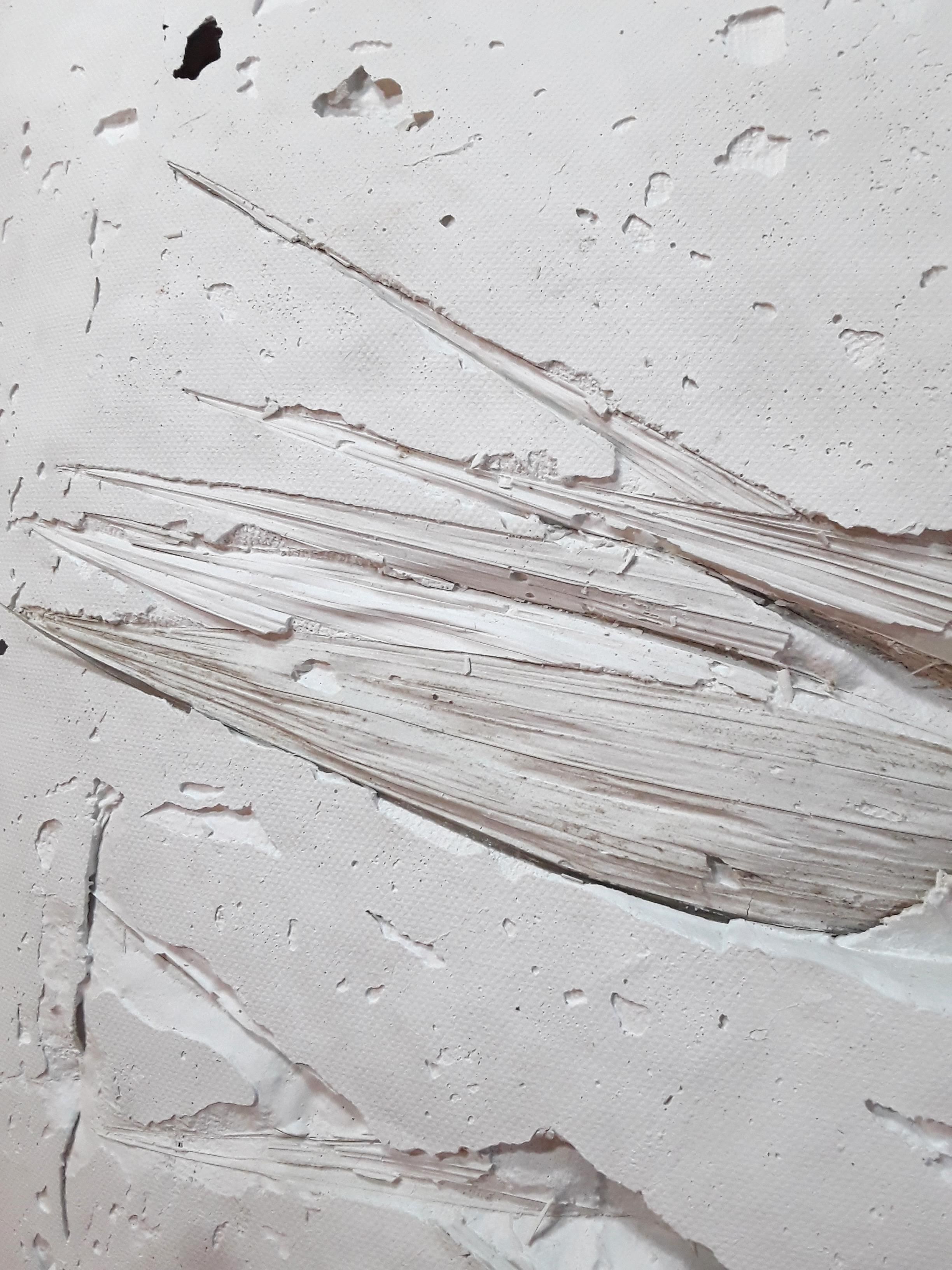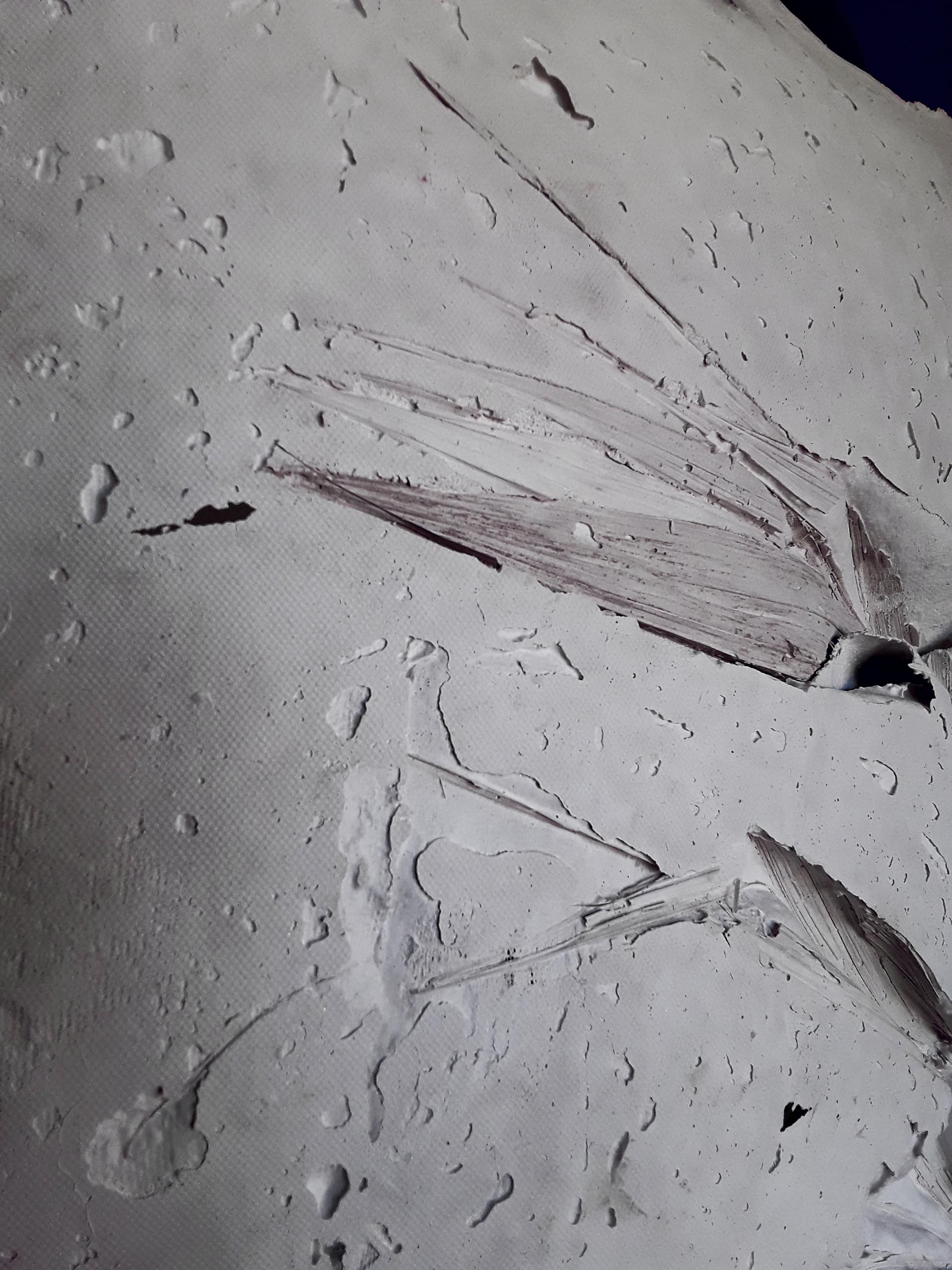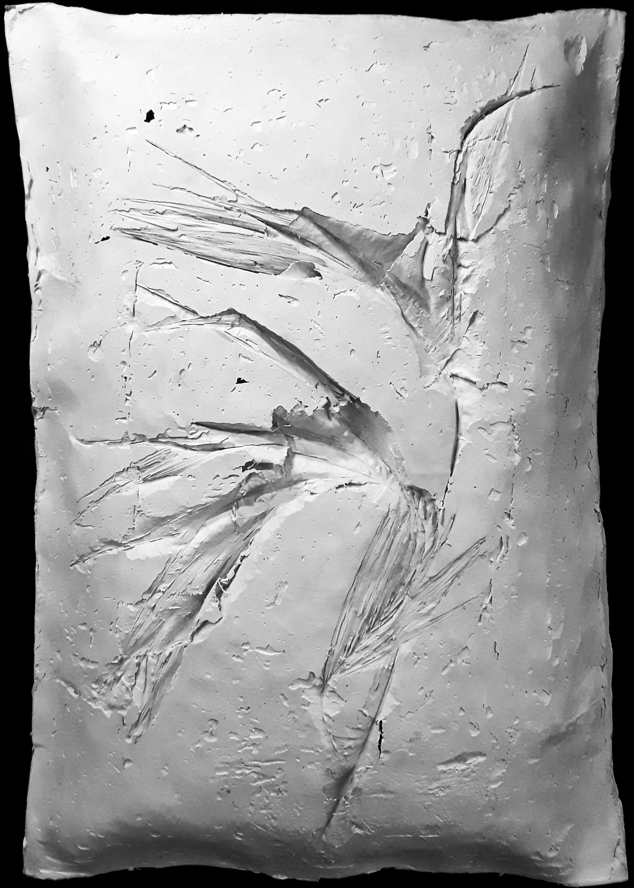 SINDONE- TRE FOGLIE, garza, gesso e foglie, cm 100x70x15