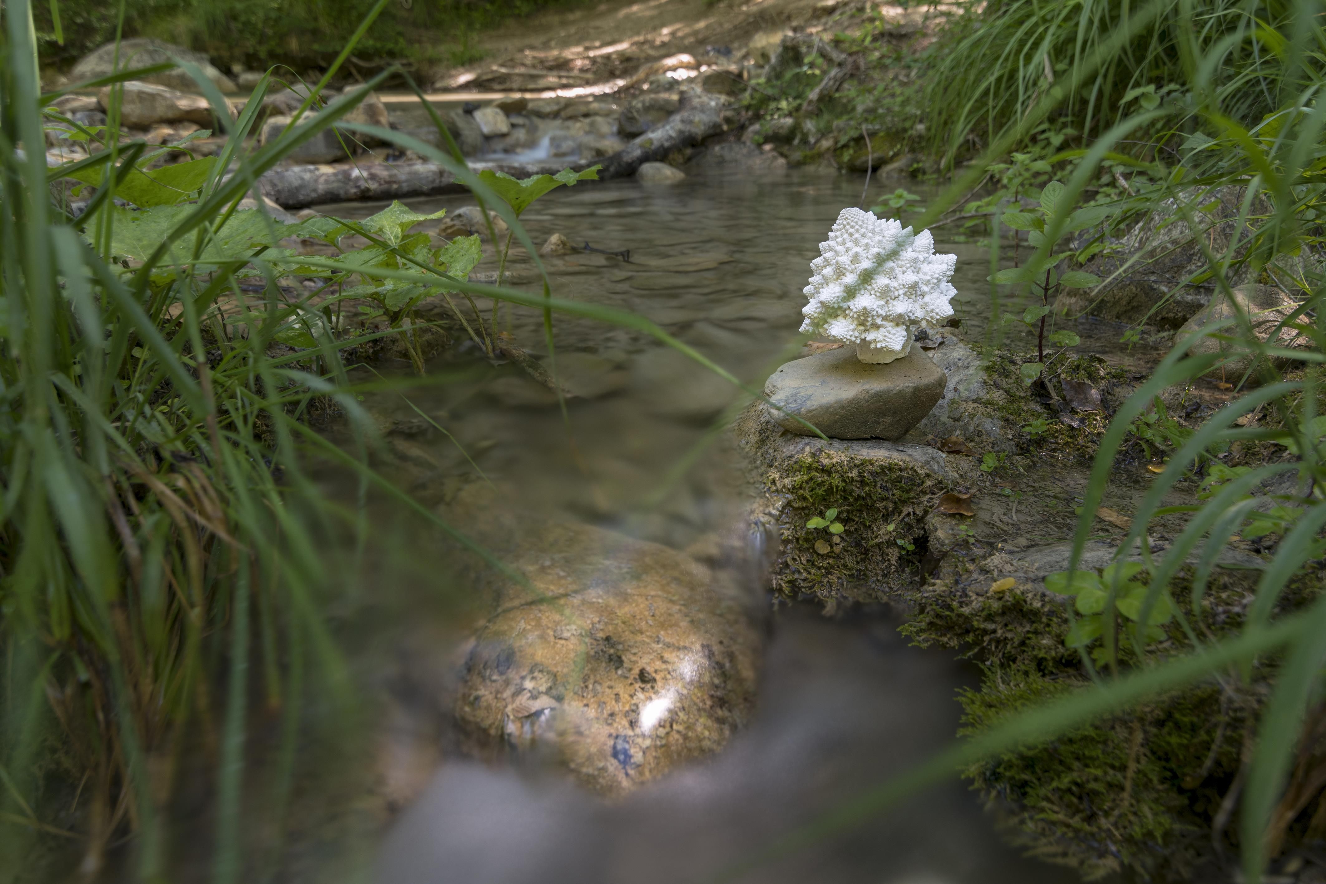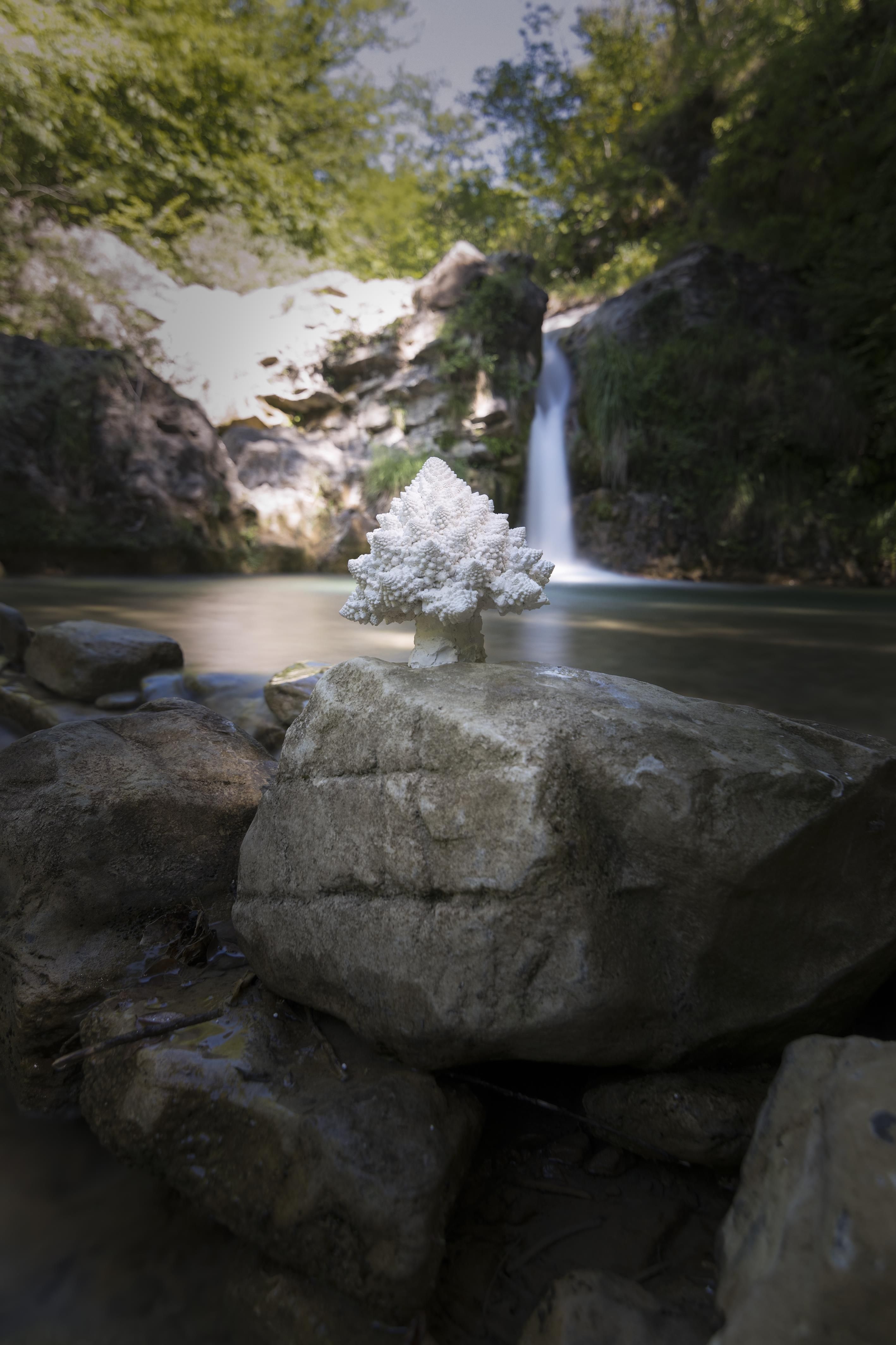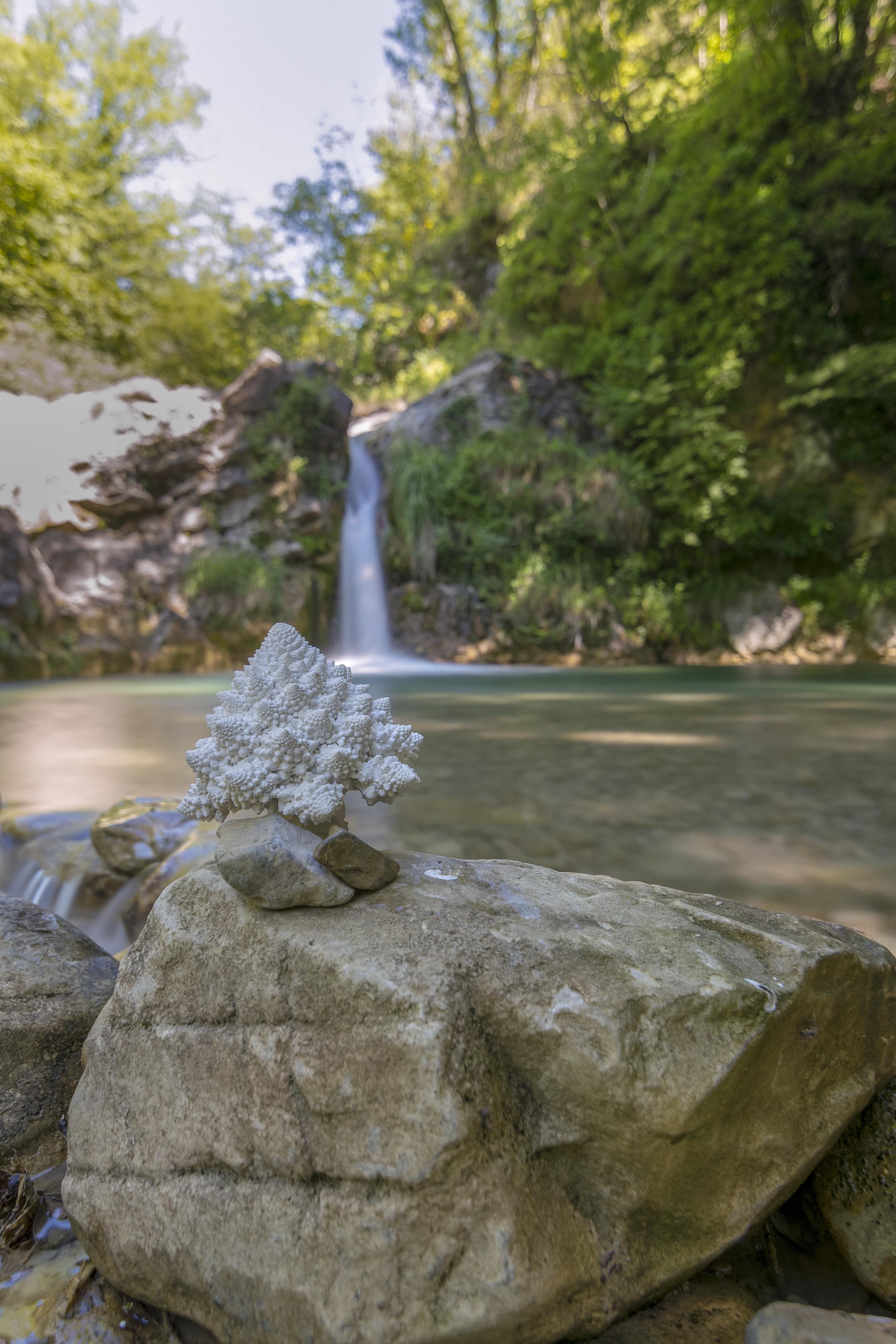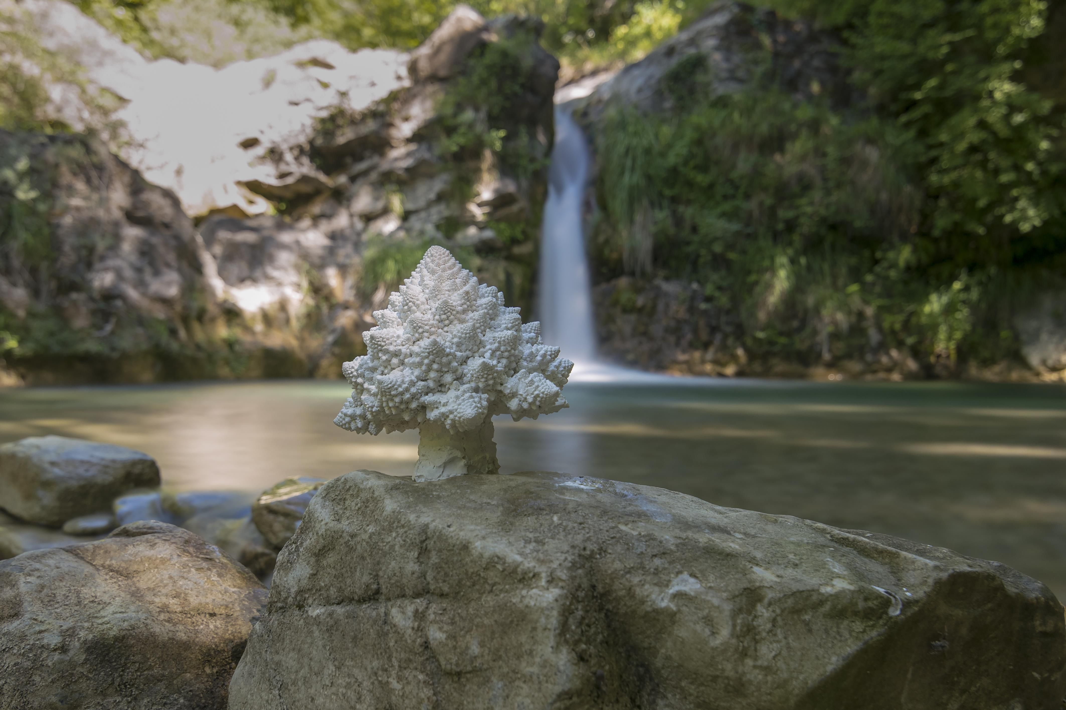 Questa installazione di 11 calchi in gesso di cavolo romanesco ripieni di polistirolo, plastiche e mozziconi di sigaretta in un luogo incontaminato della Lunigiana è stato il progetto pilota di #natureisnotyourtoy.