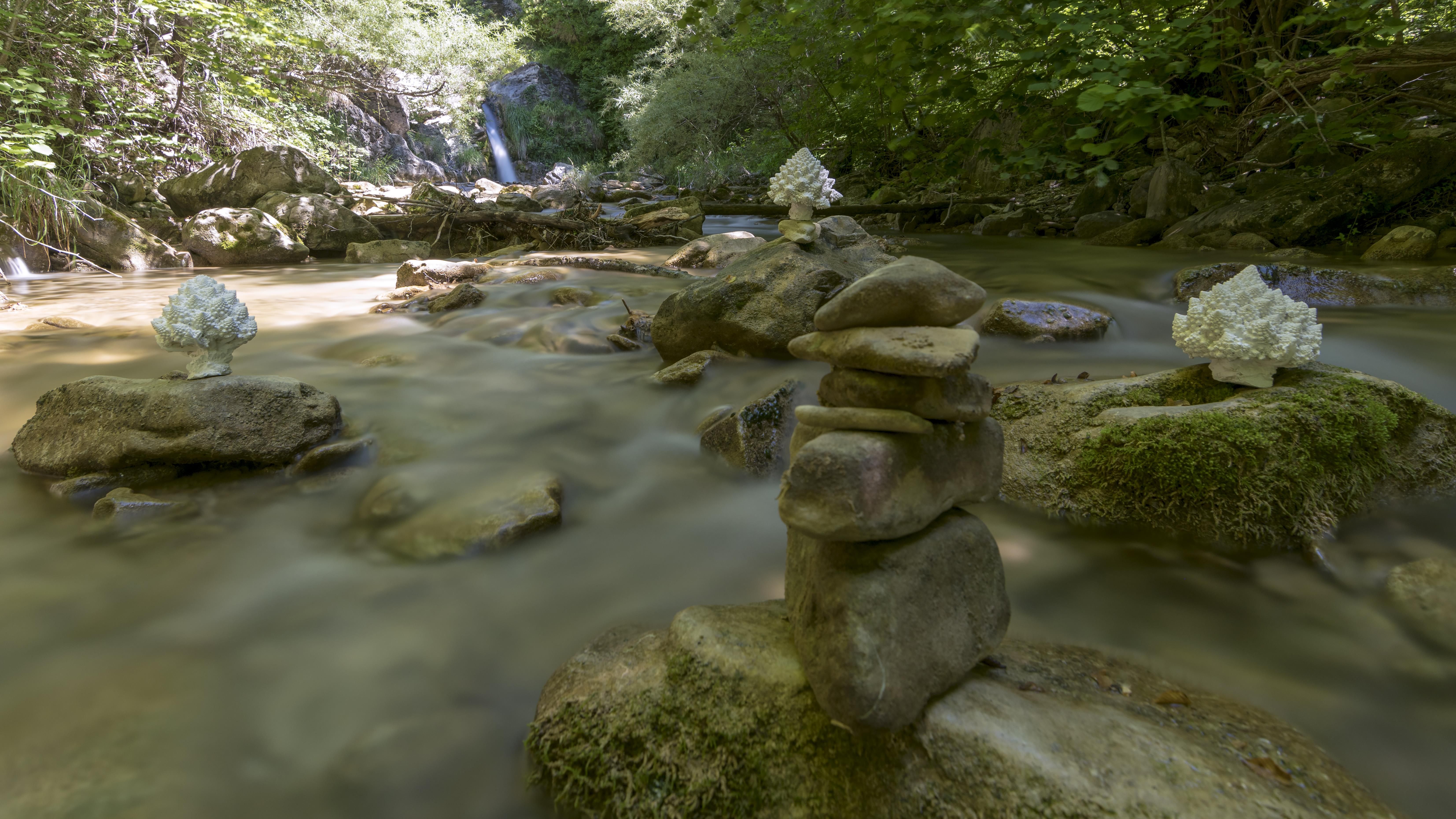 The Bozzi delle Fate site was chosen for its absolute natural beauty and for the presence of an emerald water that flows and pours into multiple waterfalls. In the flow of this vitality the 11 sculptures are inserted in immobile waiting, threatening an imminent and immanent danger.